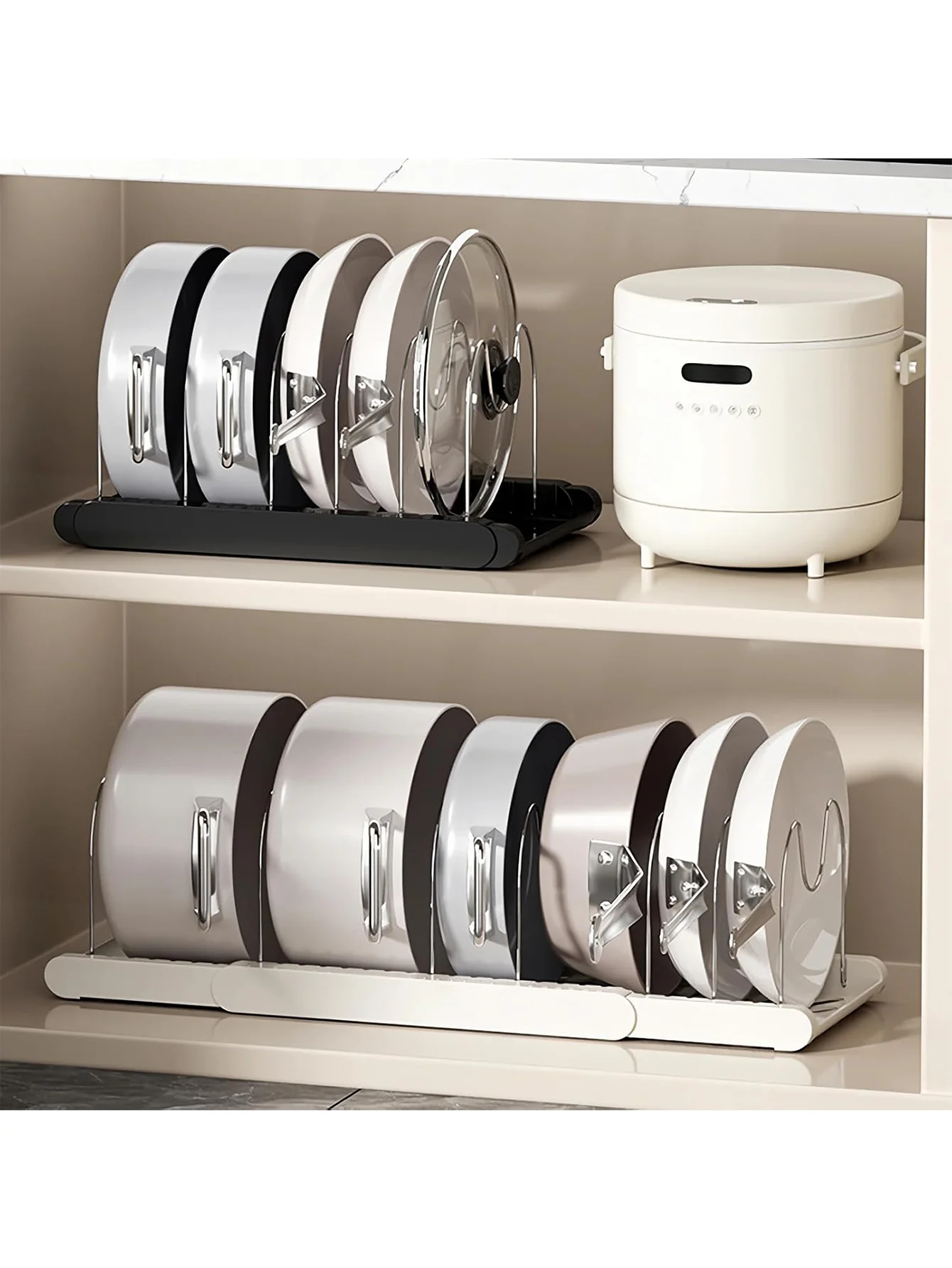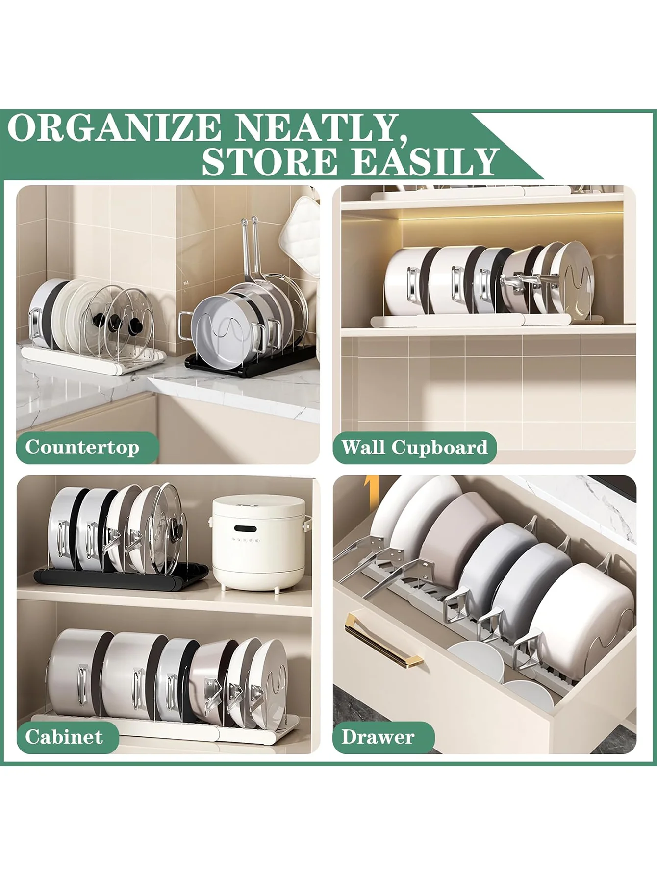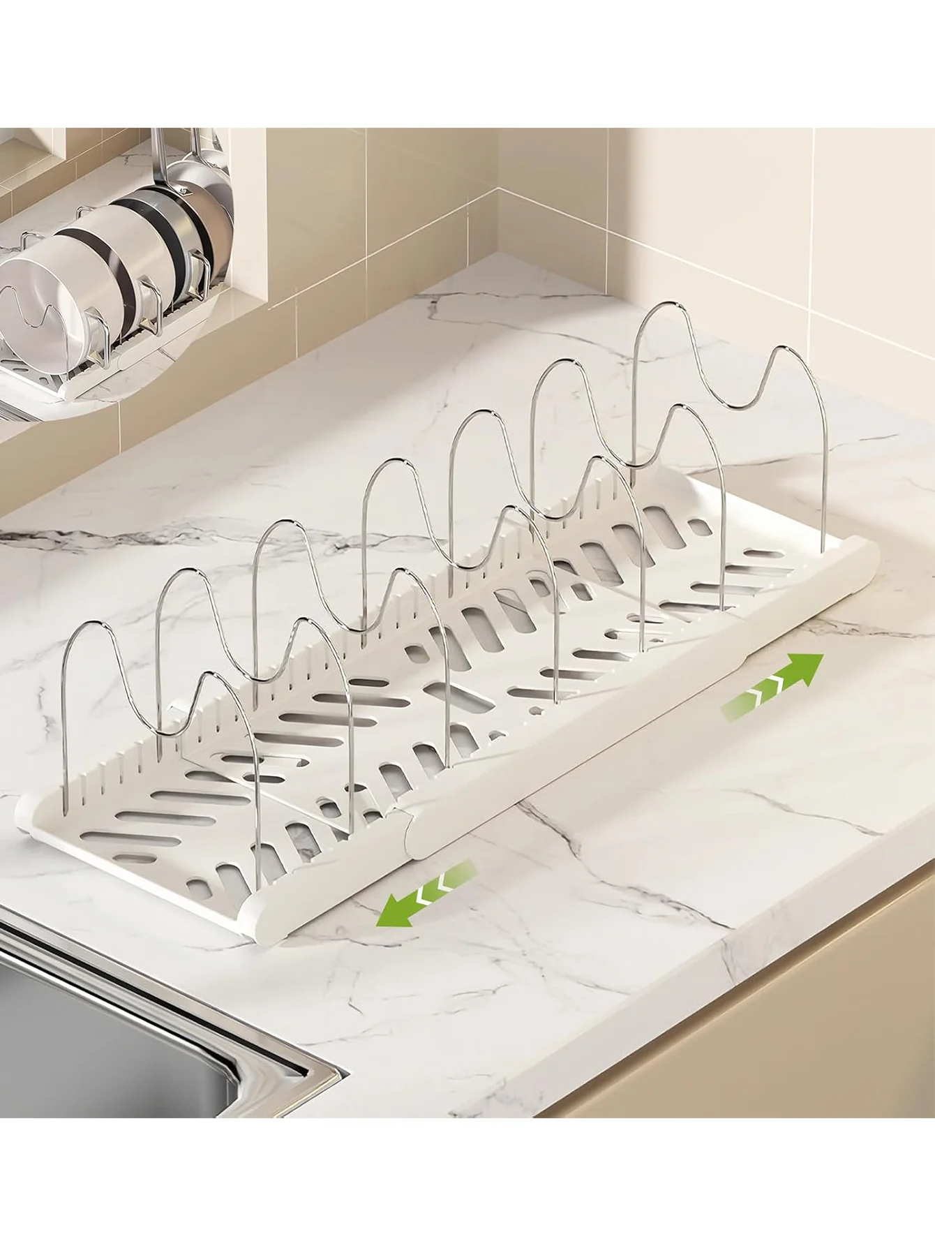 Expandable Pans Organizer Rack Kitchen Cabinet Pan Rack Utensil Rack, Dish Drainer Space-Saving Cabinet Storage Rack Christmas